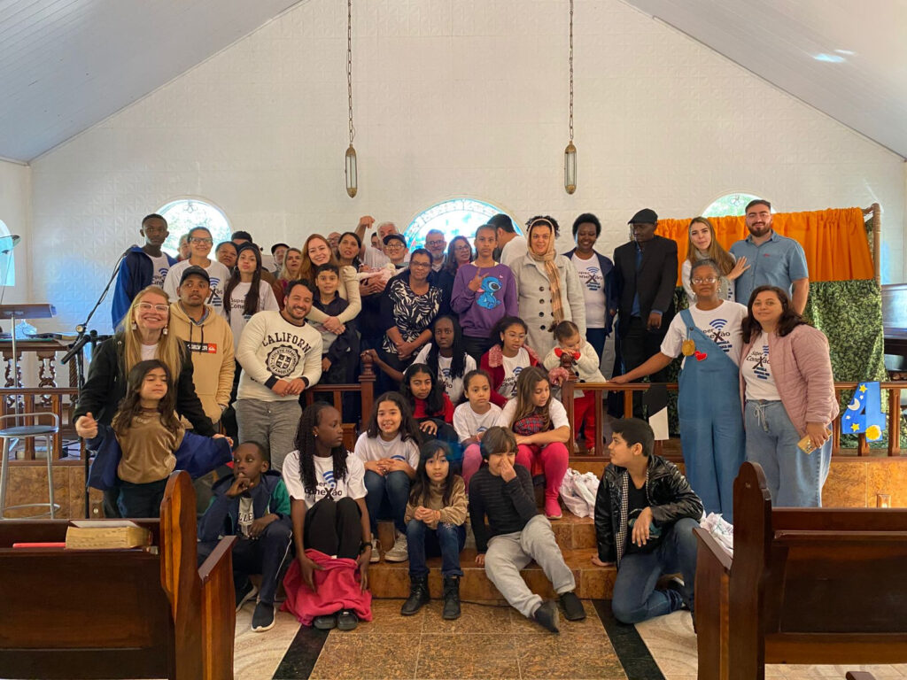 Com o tema “Super Conexão”, a ação foi liderada pela missionária Fátima e sua equipe, contando com histórias bíblicas interativas, apresentações com fantoches, pintura facial, brincadeiras, músicas e até malabares, sob a animação do palhaço missionário Azeitona. Tudo preparado com muito carinho para proporcionar momentos inesquecíveis às crianças e seus familiares.