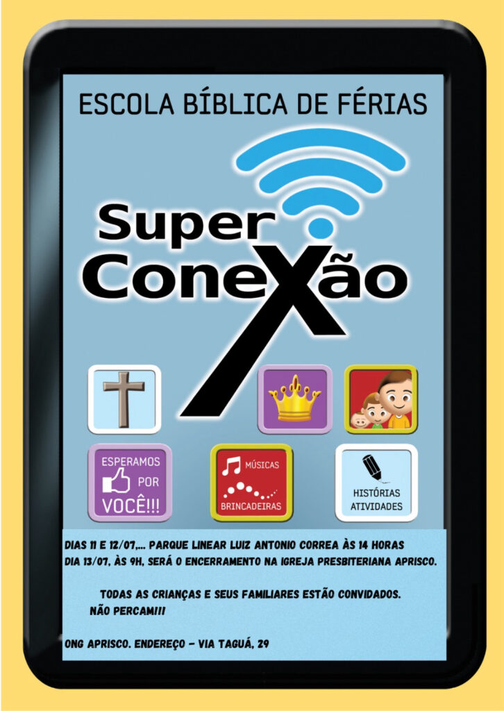 Durante os dias 11 e 12 de julho, a Igreja Presbiteriana Aprisco levou ao Parque Linear Luiz Antônio Corrêa um verdadeiro show de amor, cuidado e evangelismo voltado às crianças da comunidade. Através da Escola Bíblica de Férias (EBF) – Super Conexão, o espaço foi transformado em um ponto de encontro entre diversão, fé e solidariedade.
