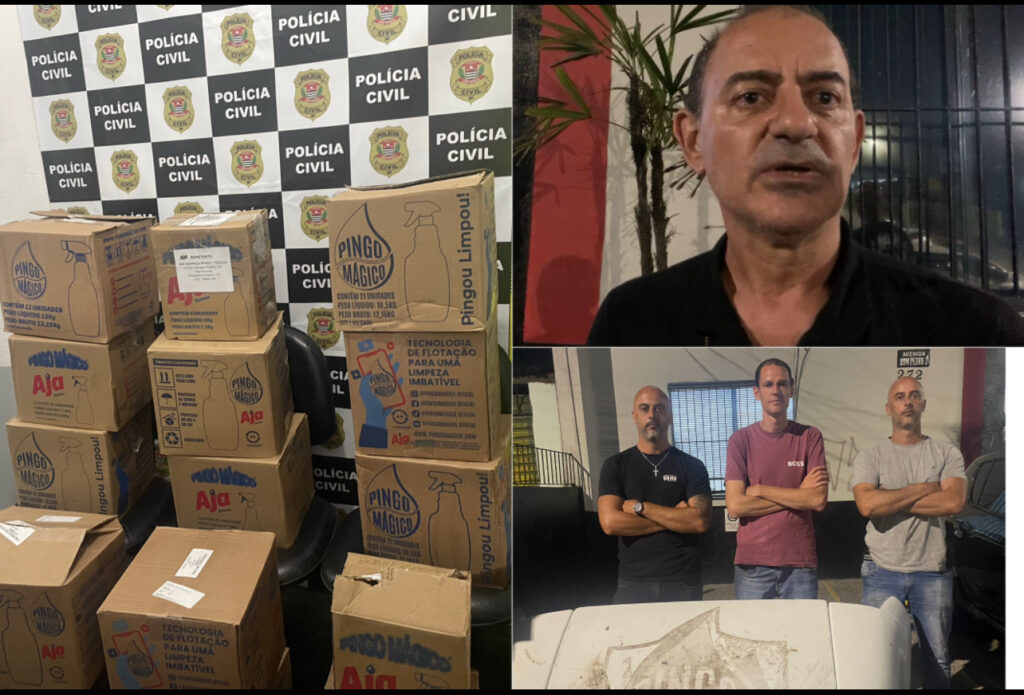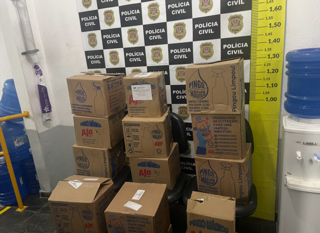 No interior da propriedade, os agentes encontraram um vasto material ilícito, incluindo diversas peças de caminhões, múltiplas placas de veículos, documentos de procedência duvidosa e caixas de produtos de limpeza. As etiquetas nestes produtos coincidiam com as de uma carga registrada como furtada no interior de São Paulo, confirmando a conexão do grupo com outros crimes.