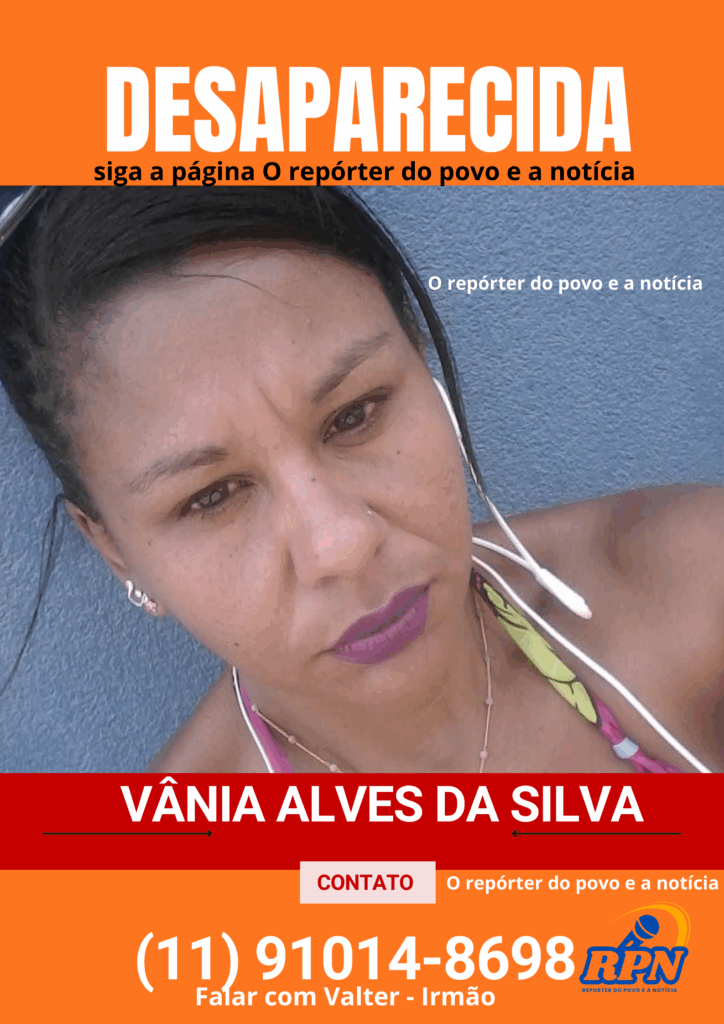 Se você viu Vânia Alves da Silva ou tem qualquer informação que possa ajudar a localizá-la, por favor, entre em contato imediatamente com os familiares pelos telefones: