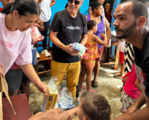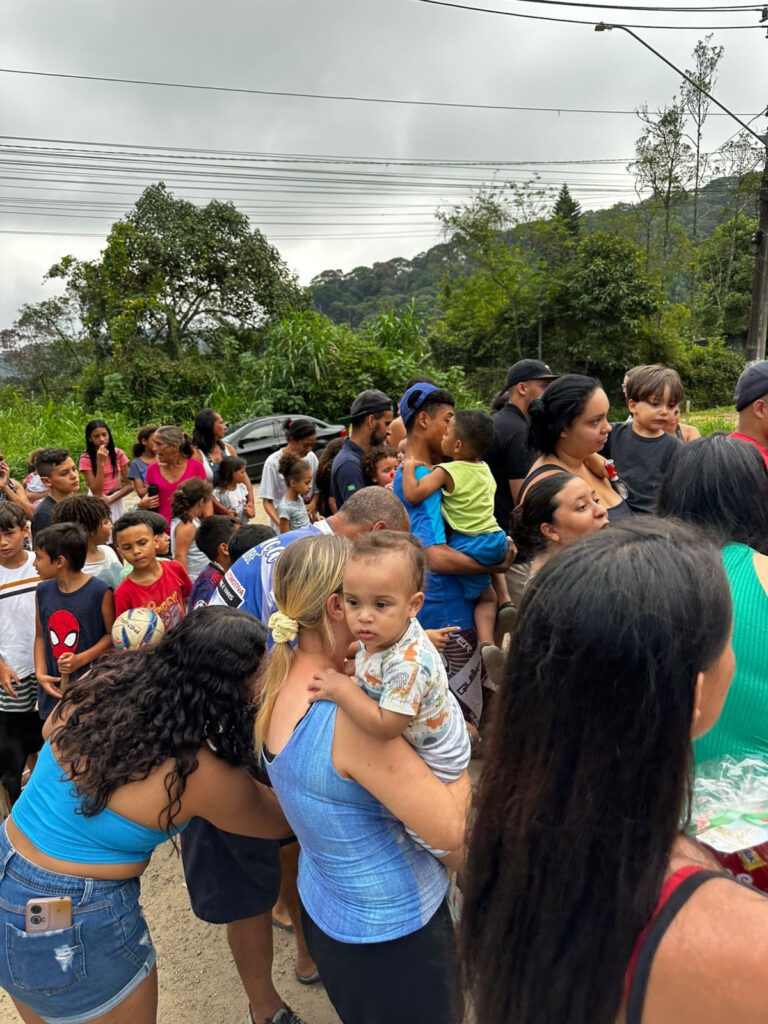 O ponto alto da ação foi a festinha realizada na comunidade do Jardim Nakamura. Pensada para as crianças da região, o evento também acolheu calorosamente todos os pequenos das comunidades vizinhas, que puderam desfrutar de uma tarde repleta de diversão. A festa contou com a distribuição de algodão doce, cachorro-quente e pipoca, culminando na tão esperada entrega dos chocolates. Um momento simples, mas que se traduziu em sorrisos genuínos e muita felicidade para cada criança presente.