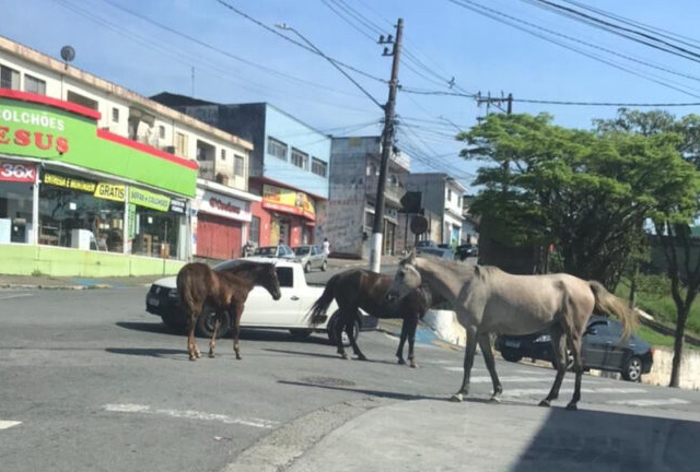 Rio Grande da Serra, 06/10/2025 Cavalos soltos em vias públicas tornaram-se uma cena comum e...
