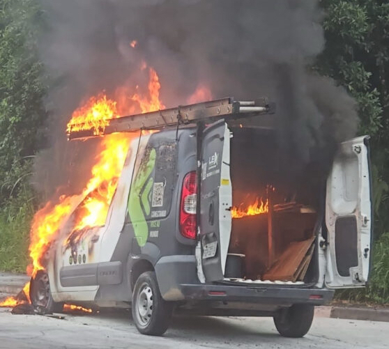 Rio Grande da Serra, 23/02/2026 Na manhã desta Segunda-feira (23), Um veículo pegou fogo e...